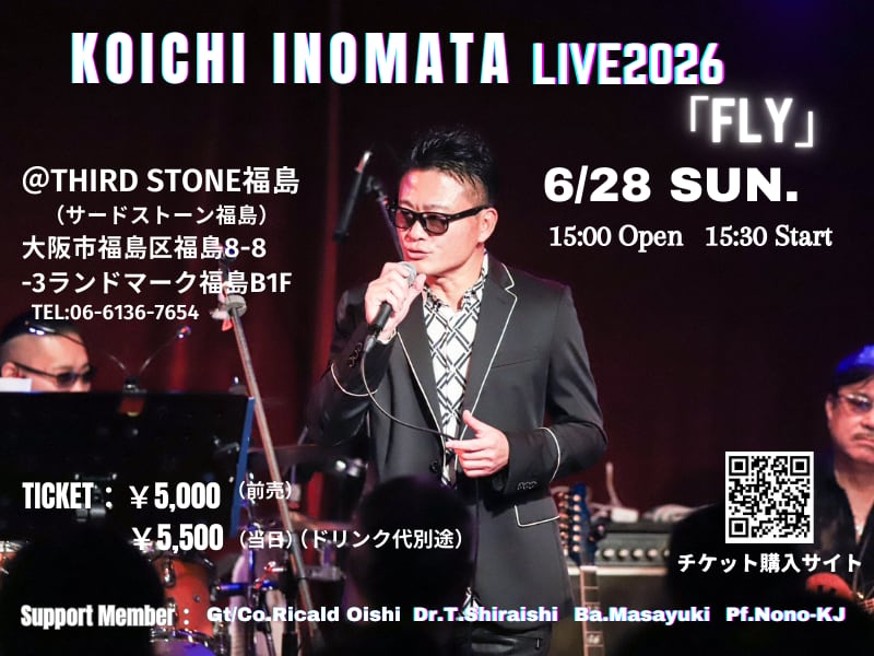 2026年6月28日(日)15:30より開催される KOICHI INOMATA LIVE2026前売入場券(5,000円)★入場時、別途ドリンク代が必要となります。